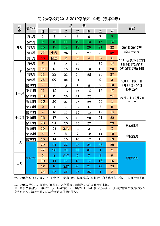 2018-2019学年第一学期(秋季学期)校历 -国产一区二区日本在线