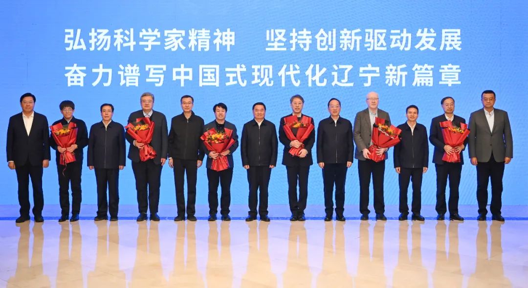 省领导与辽宁新当选的两院院士合影。
